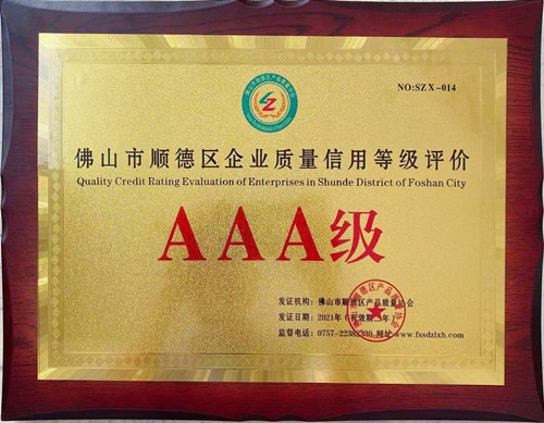 2021年5月7日,佛山市順德區產品質量協會在仙泉酒店組織了“2021年標準化戰略引領NQI體系高質量發展(順德)高峰論壇”,論壇會上特邀請相關政府領導對獲得“佛山市順德區企業質量信用等級評價AAA級”的企業進行頒牌儀式!