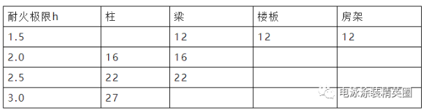 表一(適用于厚漿型鋼結(jié)構(gòu)防火涂料)(涂層厚度㎜)